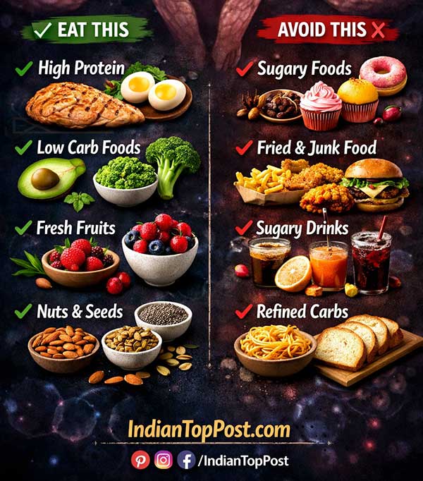 PCOS में लो-कार्ब, हाई-प्रोटीन और हाई-फाइबर डाइट फायदेमंद मानी जाती है।