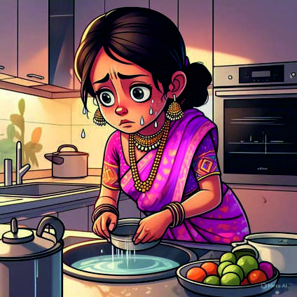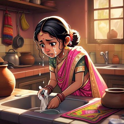 रसोई में बर्तन धोते-धोते उसकी आँखों से आँसू गिर रहे थे।