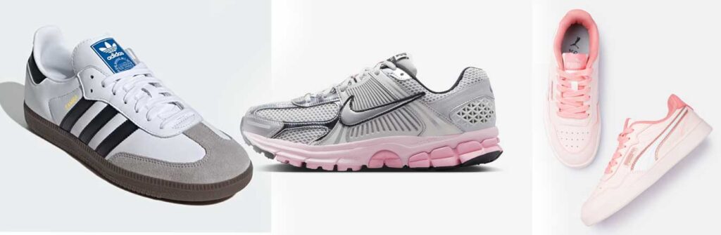 Adidas Samba, Nike Pegasus 2K5 और New Balance 550 जैसे sneakers आज के fashion influencers और trendsetters की पहली पसंद बने हुए हैं, और यही वजह है कि sneakers अब style के साथ-साथ self-expression का भी symbol बन चुके हैं।